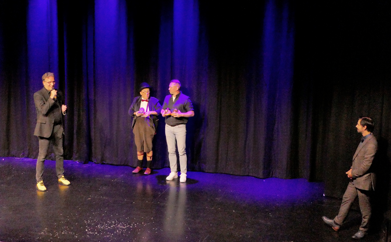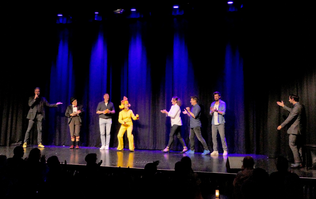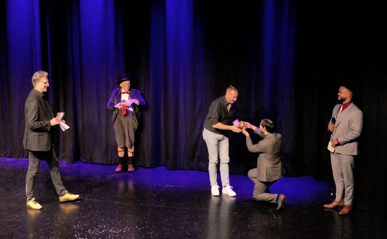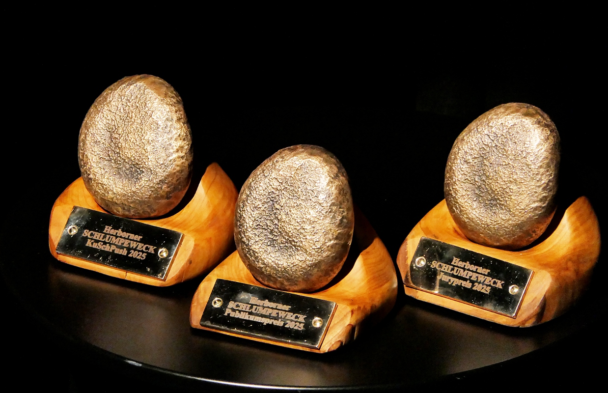 Neuland haben die Macher der KuSch mit der 17. Ausgabe ihres Kleinkunstpreises „Schlumpeweck“ betreten. Erstmals wurde der traditionelle Wettbewerb an einem Abend entschieden. Sechs Künstlerinnen und Künstler hatten dabei 20 Minuten Zeit, die beiden Jurys und das Publikum von sich zu überzeugen. Am Ende gelang das Tom Dewulf am besten. Der Belgier gewann nicht nur den Publikumspreis, sondern auch den „KuSch Push Sonderpreis“, den eine Auswahl junger Mitglieder aus den verschiedenen Nachwuchs-Ensembles der KulturScheune vergab. Monsieur Momo war bei der aus Vertretern der Sponsoren (Sparkasse Dillenburg, Rittal Foundation und Stadtmarketing Herborn) gebildeten Jury vorne. Neben den vom Atelier Christoph Oester liebevoll gestalteten Sieger-Trophäen gab es jeweils 2500 Euro für die Gewinner von Jury- und Publikumspreis sowie 1500 Euro für den Sonderpreis.