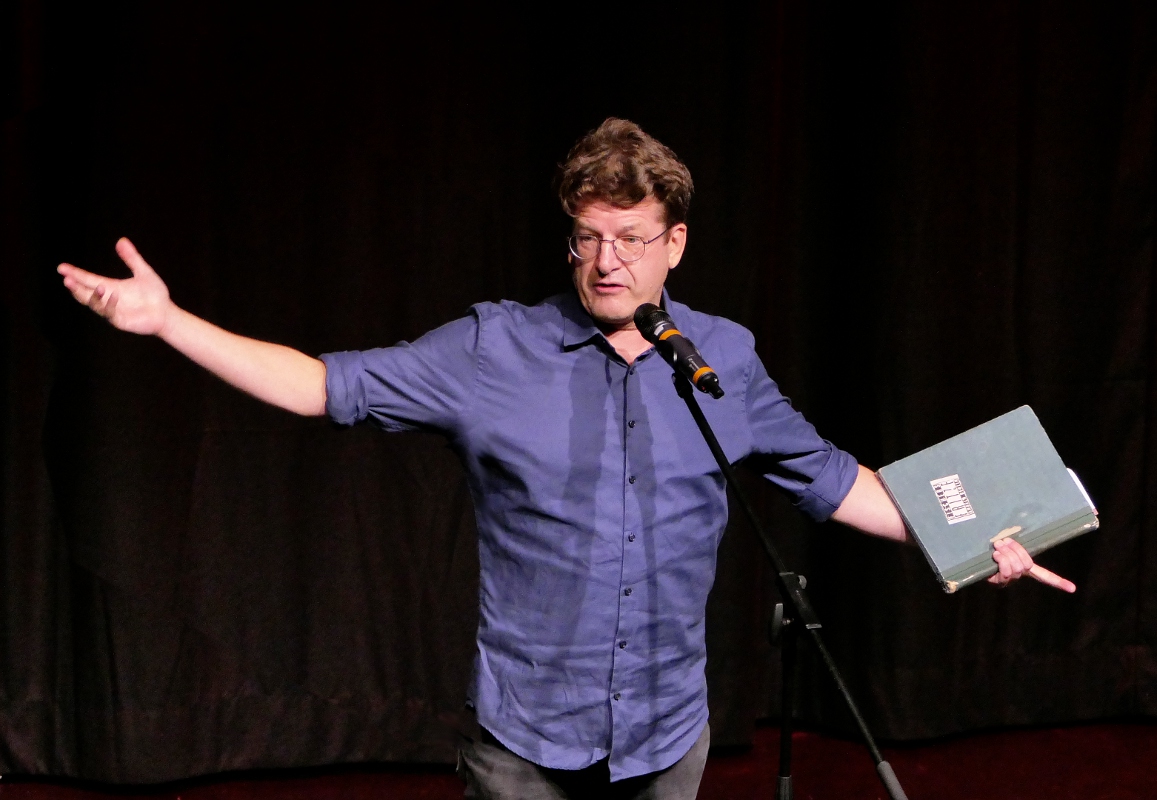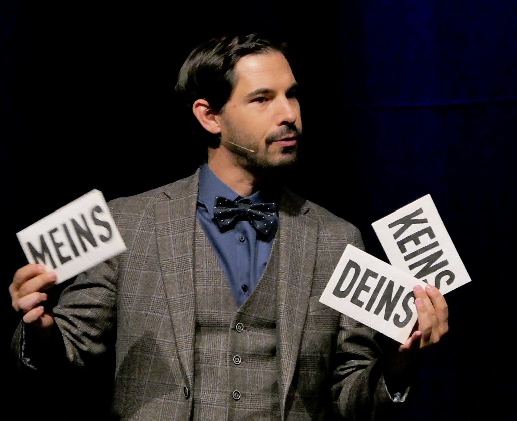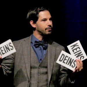 Dass er keine Mühe hatte, das Stimmungs-Level hochzuhalten, lag auch an der Qualität der sechs Wettbewerbsteilnehmenden. Zum Auftakt legte Nils Heinrich die Messlatte gleich hoch, als er in seinem Beitrag durchspielte, wie sich ein Mensch fühlen muss, der nach 25 Jahren „Schlaf“ plötzlich in die heutige Zeit stolpert. Was ein bisschen nach „Goodbye Lenin“ klingt, brachte bei Heinrich die skurrilsten Dialoge hervor.