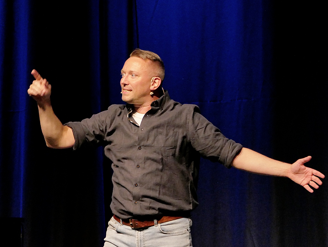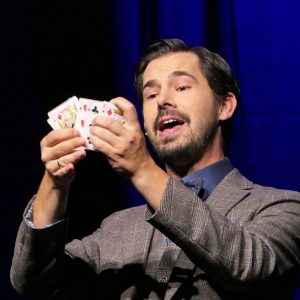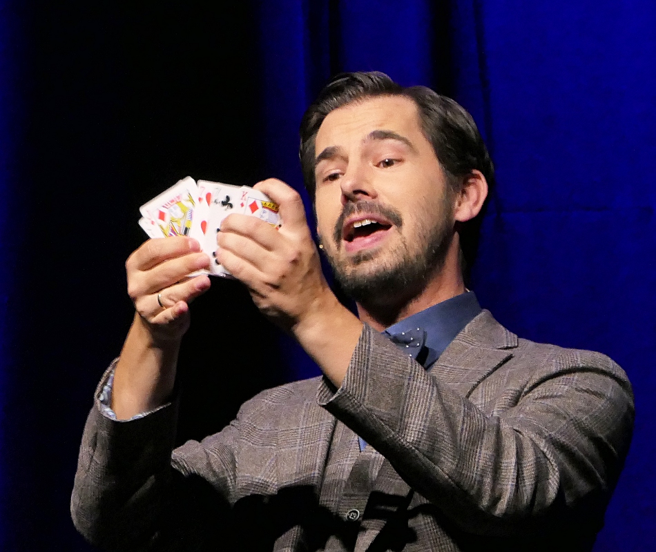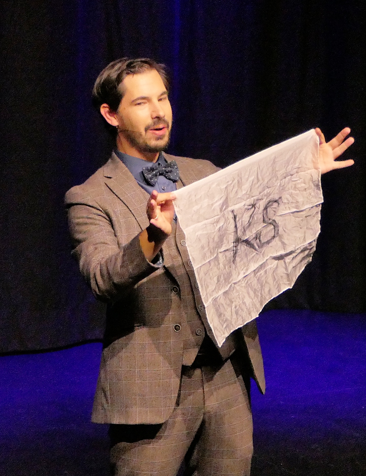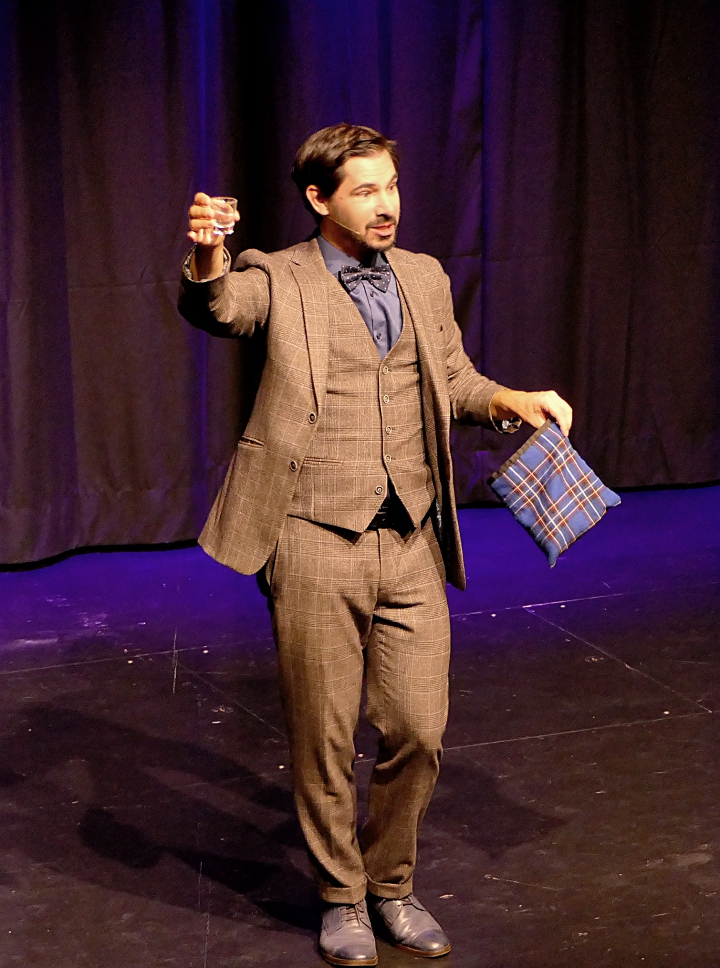 An Moderator Alexander Merk war es, locker und launig durch den Abend zu führen, was dem Berliner Zauberer auch bestens gelang. Egal ob bei Kartentricks, magischen Tüchern oder einer Lampen-Birne, die am Ende doch keine war – Merk verblüffte das Publikum ein ums andere Mal.