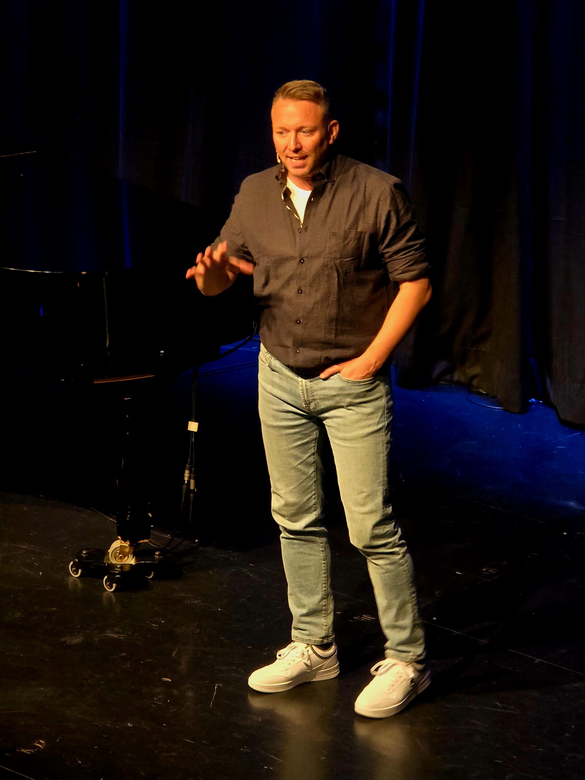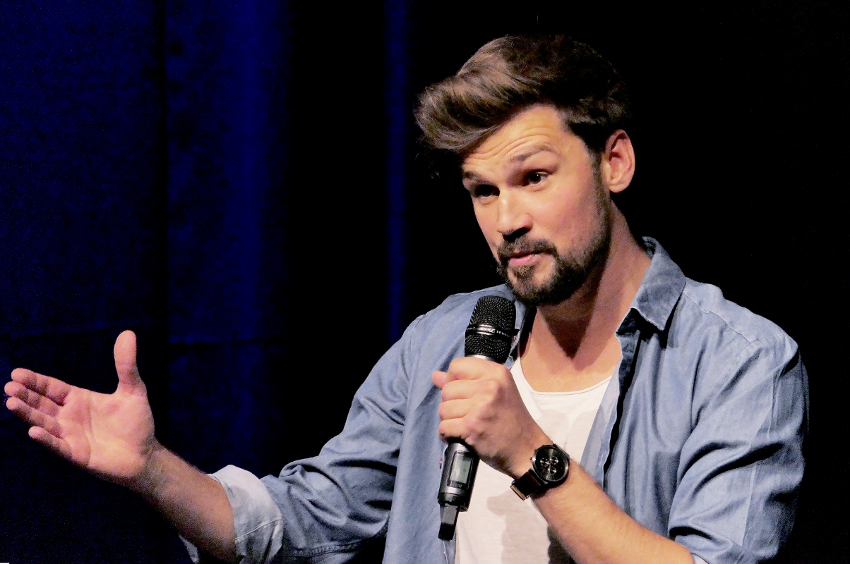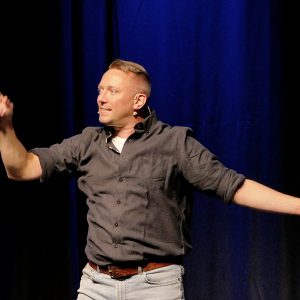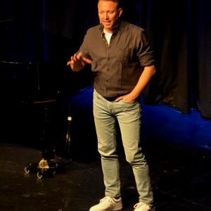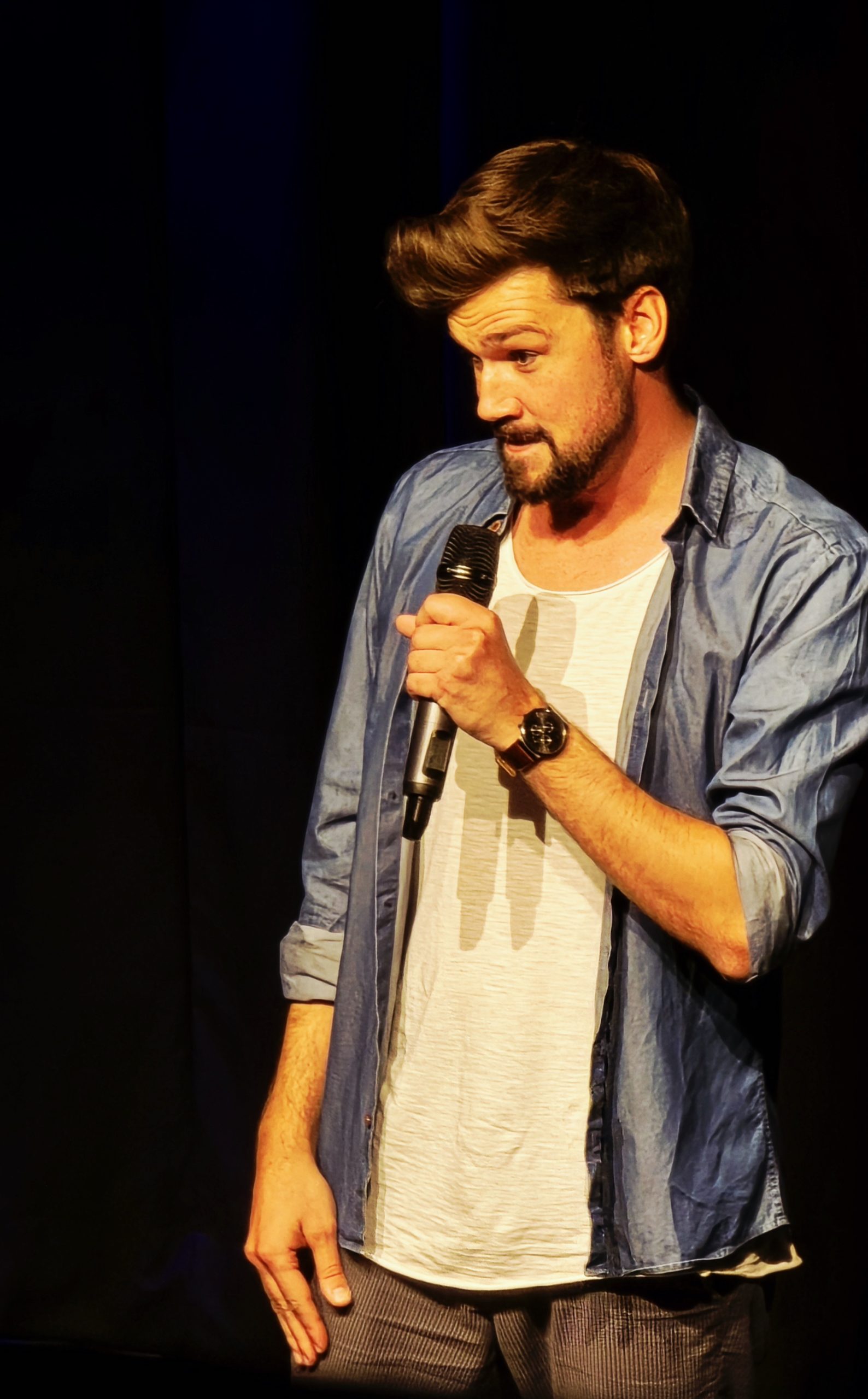 Tom Dewulf ist Belgier, lebt aber schon seit Jahren in Deutschland. Dass es mit unterschiedlichen Sitten in den Nachbarländern aber nicht so ganz einfach ist, machte er in seinem Energie geladenen Set mehr als deutlich. Vom Lach-Yoga bis zur grundsätzlichen Aussage, dass das Leben mit Humor viel leichter ist, hatte der Wahl-Erfurter, der auch erfolgreicher Buchautor ist, das Publikum von Beginn an hinter sich und zudem auch die Nachwuchs-Jury, die ihm einstimmig (!) den Sonderpreis zuerkannte.