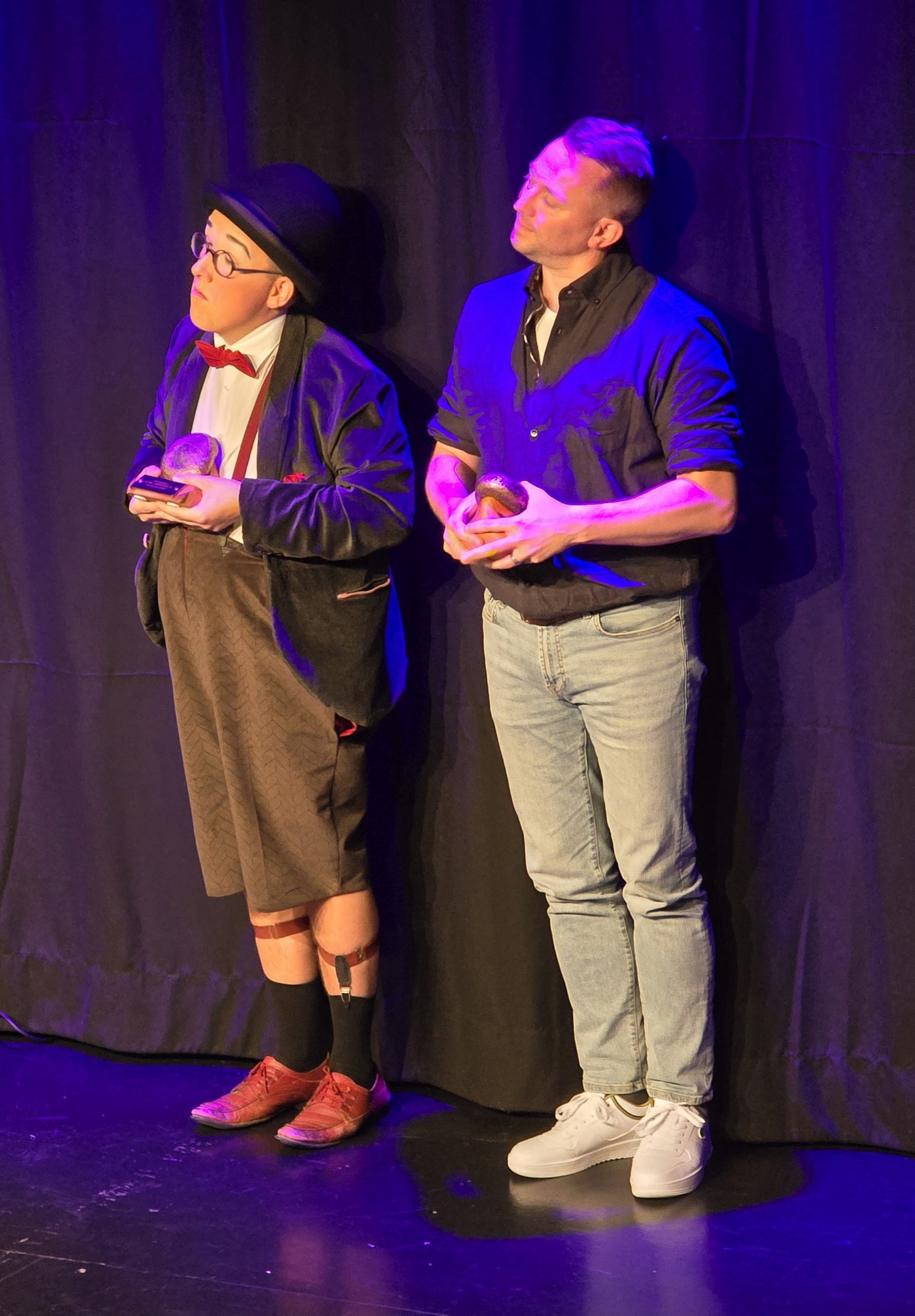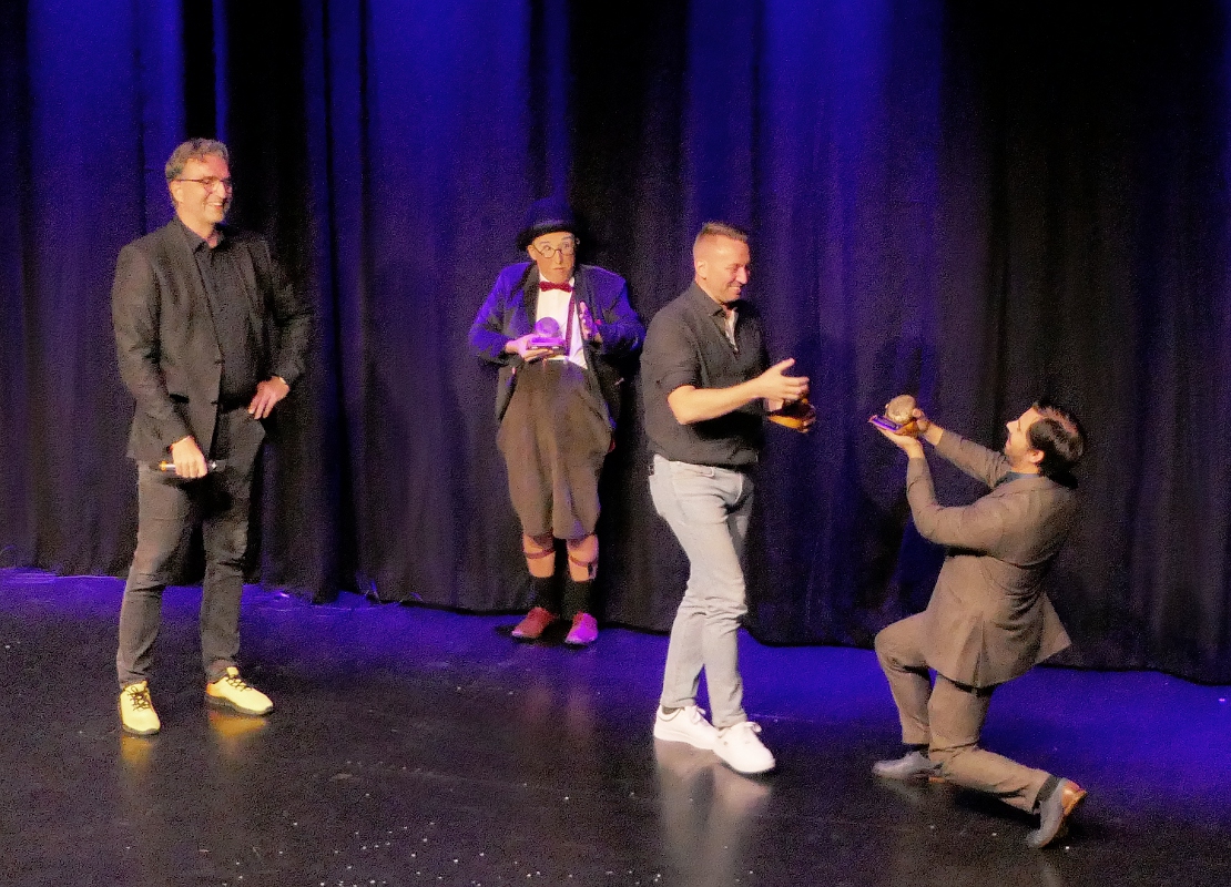 Monsieur Momo, staatlich geprüfter Clown mit Roncalli-Vergangenheit, hatte nur ein Wort für seinen Auftritt parat – ein augenzwinkerndes „Magic“. Wenn er mit einem Garderobenständer tanzt, auf einem Besen reitet oder über Flaschen läuft: Die Posie des Augenblicks, gepaart mit tatsächlichem Können amüsierte die Zuschauer und überzeugte letztlich auch die Jury.