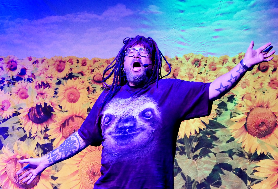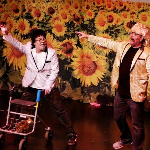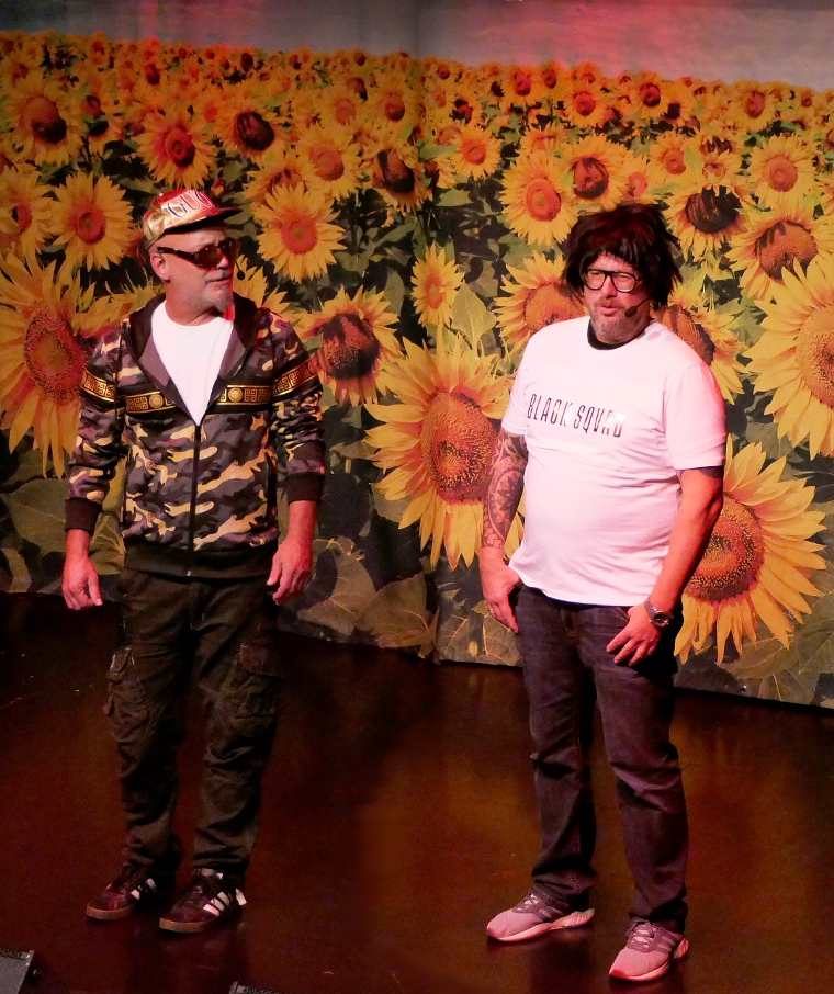 Und auch in diesem Programm sind sie alle wieder dabei: Die Parade der Mundstuhl-Figuren beginnt mit den Ossi-Hartz-IV-Müttern Peggy und Sandy. Lars gibt wie immer den psychopathischen Grillschorsch. Als Friedensaktivisten Malte und Torben erklären sie die Probleme der Welt und auch Dragan und Alder sind immer noch da. Ebenso wie Chefcholeriker Andi und natürlich Sickroy und Fried, die schlechtesten Zauberer der Welt.
