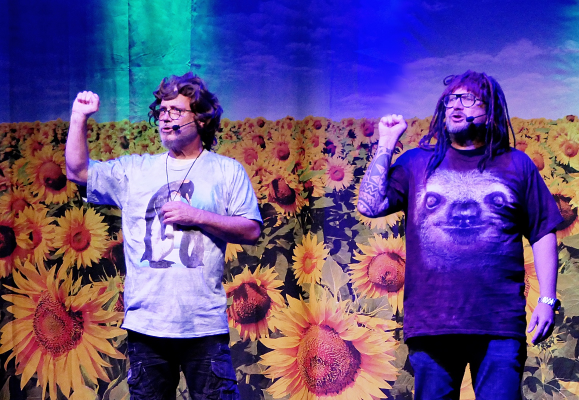 „Wir kommen“, so nennen Lars Niedereichholz und Ande Werner, alias Mundstuhl ihr brandneues Programm. Und das hatte in der KuSch Premiere. Zutaten in der ausverkauften Kulturscheune waren wie immer: Viel hessisches Gebabbel gemixt mit brüllend komischer Unkorrektheit.