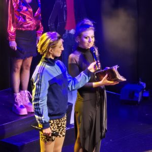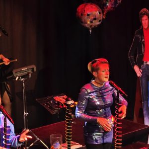 Die „Medlz“, die sowohl im sportlichen Outfit als auch im Glitzerlook die 90er optisch unterstrichen, brachten die legendäre Dekade mit Drumpads und Effektgeräten mit einem beachtlichen Klangspektrum auf Touren. Rotationsweise übernahmen die vier Frauen die Leadparts, und gaben so den Songs auch eine individuelle Note. Fürs Publikum gab es zusätzlich witzige Accessoires wie Leckmuscheln oder ein Treppenläufer mit Bravo-Starschnitten, zum Beispiel von David Hasselhoff.Glitzerlook, die Ärzte und ein David-Hasselhoff-Starschnitt