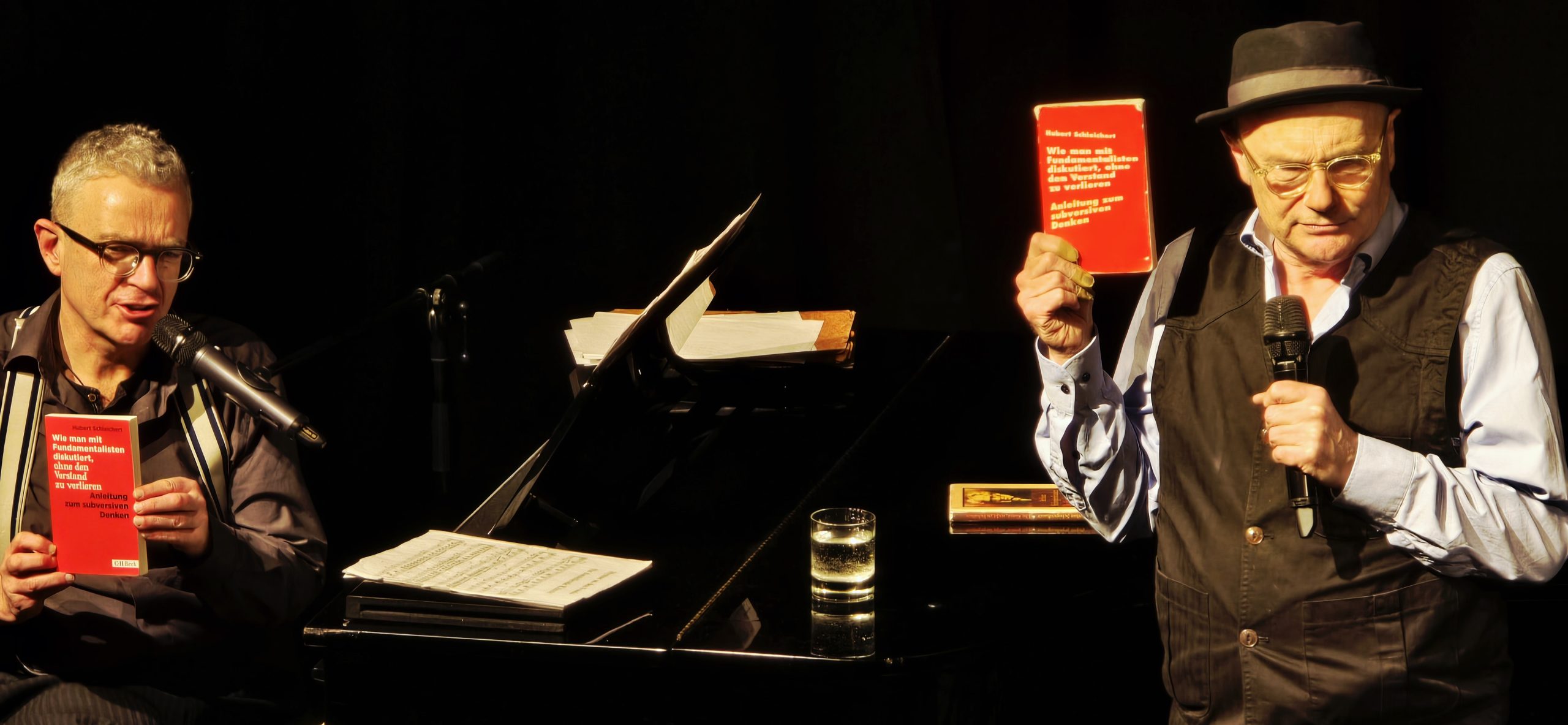 Kabarettisten, die singen und Klavier spielen, gibt es viele. Doch nur zwei, die mit stilistisch bunt gefärbtem Salon-HipHop die Alltagsidiotie und den Zeitgeist gekonnt aufs Korn nehmen: Liedermacher und Komponist Thomas Pigor und Chansonnier und Pianist Benedikt Eichhorn haben am Freitagabend mit ihrem Programm „Pigor singt – Benedikt Eichhoren muss begleiten Vol. X“ ihre Premiere in der Kulturscheune (Kusch) in Herborn gefeiert.
