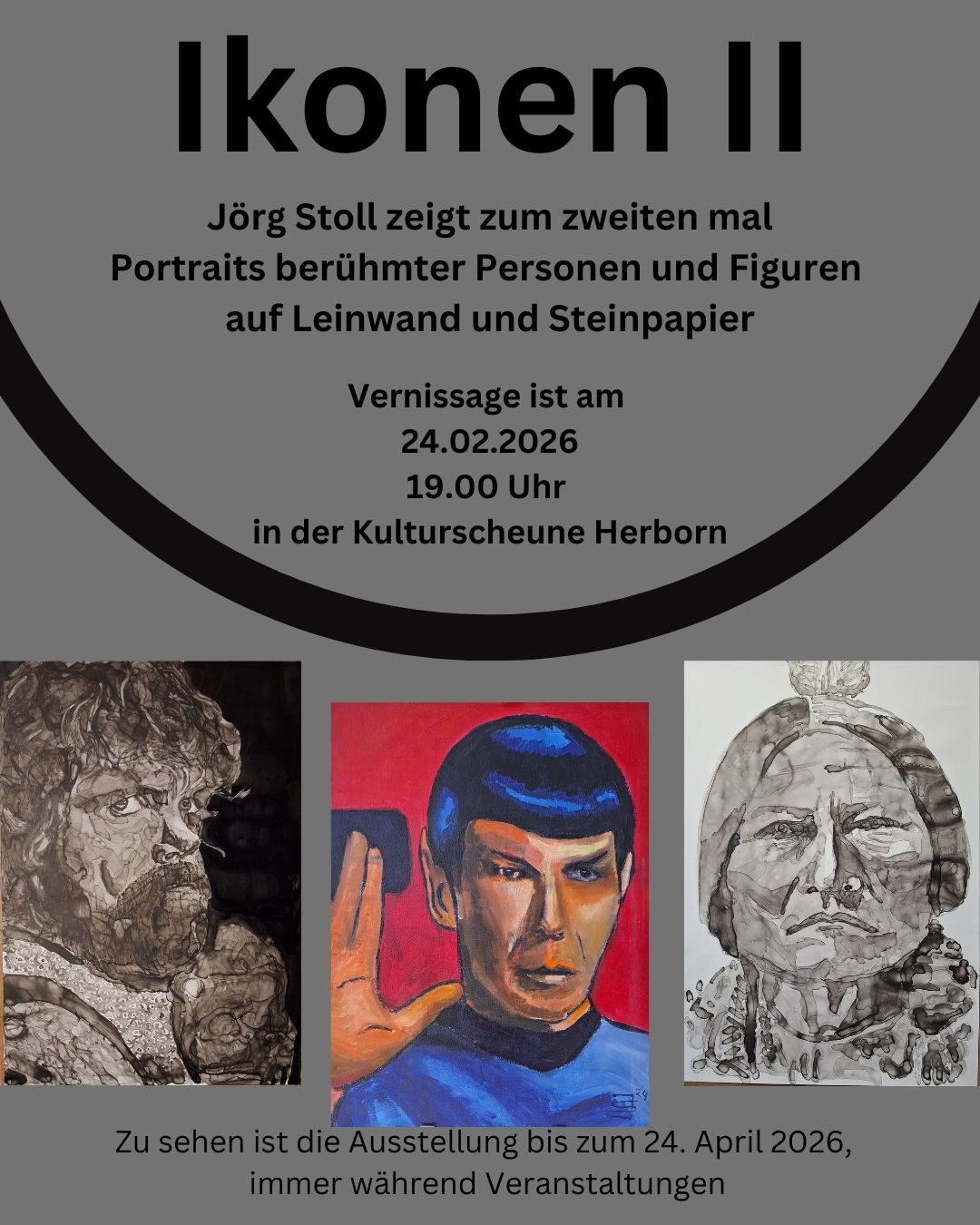 Zum zweiten Mal zeigt der Wetzlarer Künstler Jörg Stoll seine Werke in der KuSch. „Ikonen II“ hat er seine Ausstellung betitelt, die bekannte Persönlichkeiten der (Zeit-)Geschichte zeigt. Die Kunstwerke sind auf Leinwand und Steinpapier entstanden. Eröffnet wird die Ausstellung, die in den kommenden Monaten zu den Öffnungszeiten im Foyer der KuSch zu sehen ist, am Dienstag, 24. Februar, um 19 Uhr.