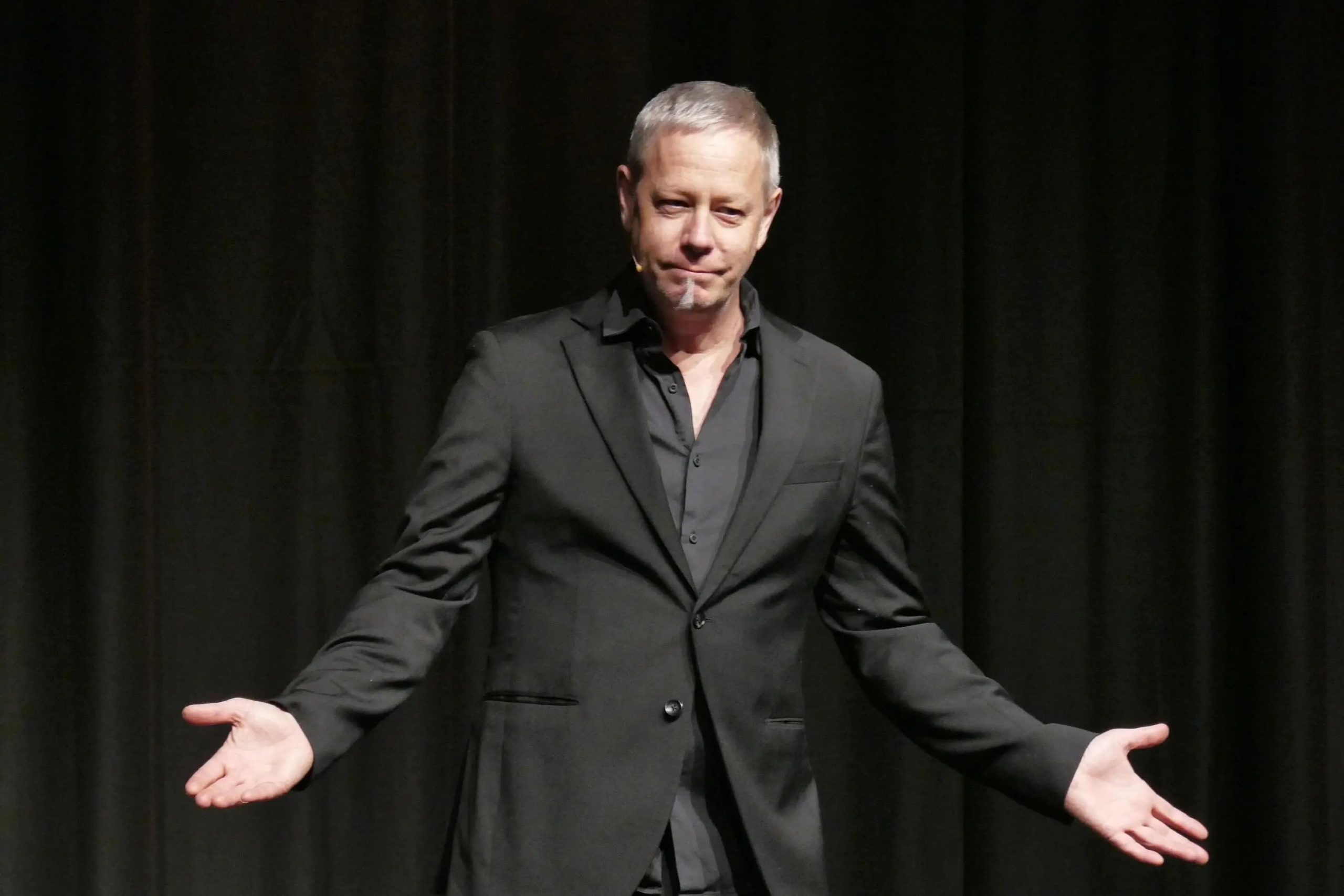 Er sei ein Kabarettist, der sich klar von Comedy abgrenze und nicht auf Lacher spiele, sowie ein philosophischer Denker mit Haltung und kritischen Fragen, heißt es im Infotext zu Jess Jochimsens Show. Stimmt! Im zweiten Teil seines Auftritts war davon allerdings weniger zu spüren. Die Themen, denen er sich widmete, zerbröselten in einem eher unstrukturierten Wörtersalat, der es den Zuhörern nicht leicht machte, sich auf seine Gedanken einzulassen.