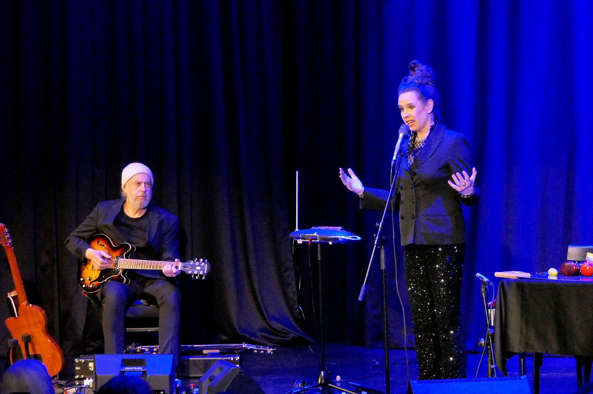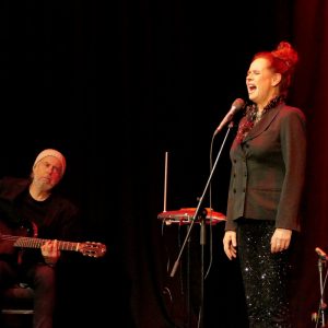 In der Herborner Kulturscheune ist Frau Tausendschön immer wieder ein gerne gesehener Gast. So auch bei ihrem inzwischen fünften Auftritt, als sie sich in der Kunst des absolut bühnentauglichen Rumeierns übte. Begleitet von dem kanadischen Gitarristen William Mackenzie gab die Komödiantin, Sängerin und Musikerin alles, um das Publikum mit ihren ungewöhnlichen aber höchst kreativen Einfällen zu eigenen Rumeier-Versuchen zu animieren. „Hier kann man echt Mensch sein.“ Mit diesen Worten begrüßte Nessi Tausendschön das Herborner Publikum und stellte ihren Bühnen-Partner vor, der als One-Mann-Band viel günstiger ist als eine komplette Combo. Billig zu haben ist Frau Tausendschön hingegen nicht.