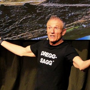 Der selbst ernannte „Dreggsagg“ aus Garitz bei Bad Kissingen hat in der „KuSch“ sein Publikum von Beginn im Griff. Anders als das entscheidungsschwache Politpersonal, macht er klar, wisse er, wo es langgeht. Dass alles teurer werde wie zum Beispiel Schokolade, liege natürlich an der Straße von Hormus, wo sich die Schiffe stauen.